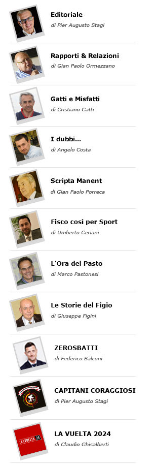 Editoriale Rapporti & Relazioni Gatti & Misfatti I Dubbi Scripta Manent Fisco così per Sport L'Ora del Pasto Le Storie del Figio ZEROSBATTI Capitani Coraggiosi La Vuelta 2024
