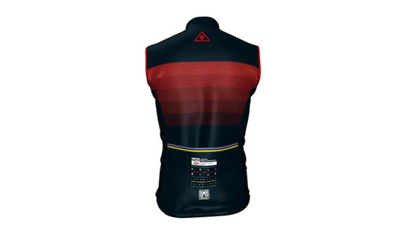 Oltre alla maglia, il kit comprende calzoncini, gilet, cappellino, calzini e guantini. I calzoncini, così come il gilet, presentano lo stesso pattern con i piccoli forconi protagonista della maglia e sono realizzati nei colori “infernali” nero e rosso e con dettagli iride. I bibshorts presentano il fondello GITevo con cuore in Twist Gel pensato per lunghe distanze.
