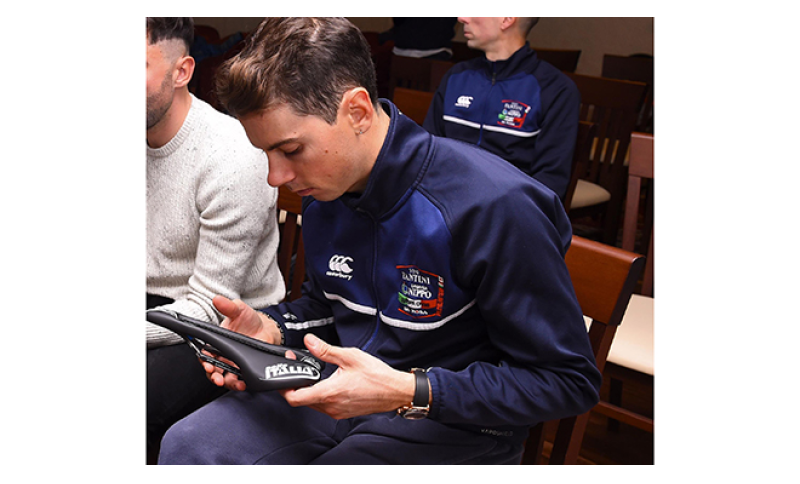 An important quality technical partner is confirmed alongside the #OrangeBlue in the 2019 season. The team and technicians of the historic Italian brand have already started working looking forward to 2019 season in occasion of the first seasonal training camp held in Asiago in November. The athletes of the team were already able to discover all the products of 2019 season and make all the basic measurements to choose the most suitable saddle for them that will accompany them for the rest of the season.