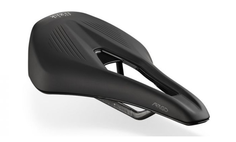Argo Vento è stata creata specificatamente per chi corre ed è disponibili in due versioni, lunghe entrambe 265mm ma larghe rispettivamente 140 e 150mm. Argo consente al ciclista di sedersi bene in avanti senza incappare in picchi di pressione elevati, ovvero quelli tipici di una sella con misure tradizionali. Il taglio centrale regala un bel po’ di respiro ed evita che le pressioni a carico dei tessuti molli diventino eccessivi. La forma del naso, abbastanza abbassato, offre il giusto supporto al bacino quando questo ruota in avanti per raggiungere il massimo beneficio aerodinamico. La schiuma utilizzata per l’imbottitura è reattiva ed è quella giusta per migliorare la spinta sui pedali. La versione Argo Vento R1 è più pregiata, infatti, grazie allo scafo ( nylon e carbonio ) e al rail in carbonio ha un peso di soli 179g.