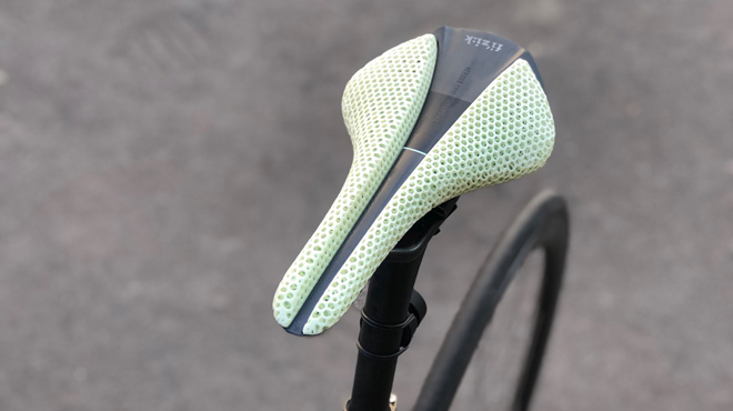 La sella Adaptive sfrutta un design maturato studiando una miriade di dati raccolti da fi’zi:k con studi biometrici di molti atleti, professionisti e non. Il risultato è una sella davvero molto confortevole, una piacevole sensazione che si avverte anche cambiando spesso posizione di seduta. Il supporto fornito dalla struttura stampata in 3D è continuo e si adatta dinamicamente alle pressioni apportate durante le diverse fasi della pedalata. Per quanto riguarda le vibrazioni, la struttura in 3D fa miracoli e se non fosse per quelle derivanti dal manubrio e dai pedali non si sentirebbe nulla. Il colore che vedete nelle foto, un verde /giallo, è il colore definitivo e resta tale e quale anche dopo diversi cicli di utilizzo. Potete anche sporcarla di fango, poi basterà un po’ d’acqua per rimuovere tutto.