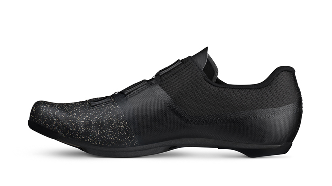 La particolare forma della tomaia salta subito all’occhio visto che si presenta asimmetrica con una linguetta sfalsata e una zona che avvolge le caviglie, quindi i malleoli davvero avvolgente. Da qui in poi, la chiusura BOA® IP1 fa alla grandissima il suo lavoro. La suola con indice di rigidità pari a 7 e una equilibrata composizione tra carbonio e Nylon (15 e 85%) è l’ideale per pedalare sui fondi sconnessi, inoltre, un posizionamento più arretrato della tacchetta fa in modo che l’efficienza di pedalata ne tragga grandi benefici.