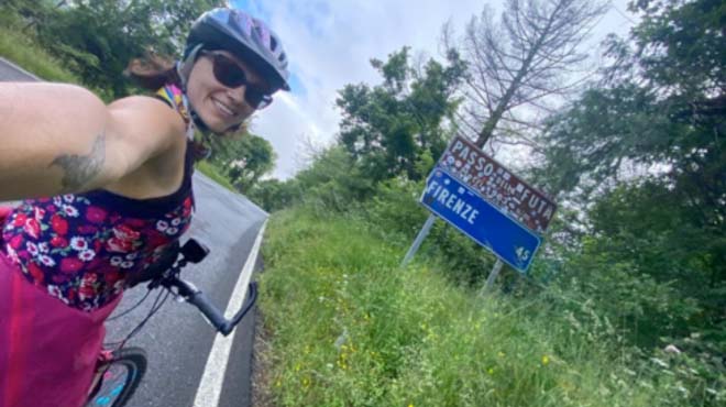 L’idea iniziale di Giovanna era quella di dormire in tenda, ma presto ha dovuto cambiare i suoi piani per i costi eccessivi dei campeggi e la poca sicurezza nell’accamparsi in modo più “wild”: «Alla fine mi sono affidata soprattutto all'app couchsurfing per trovare dove dormire, oppure al buon cuore della gente e di amici vari che ho sparsi per l'Italia ma che magari non sentivo da un sacco di tempo. Poi non avevo certo gli orari classici dei ciclisti: mi alzavo con calma e partivo verso le 11 di mattina. E spesso arrivavo a destinazione verso sera». Proprio la gentilezza degli italiani è quello che ha colpito più di tutto Giovanna: «Sono rimasta affascinata dal popolo del ciclismo, che mi ha sempre aiutata e trainata nei momenti di difficoltà. Ho trovato molti “angeli custodi”, come li chiamo io, che proprio quando stavo per mollare mi facevano la scia per diversi chilometri. Ma in generale mi ha colpito la gentilezza di tutti gli italiani. A me piace viaggiare da sola, ho fatto nove mesi in giro per il Sudamerica ed ero rimasta colpita dalla disponibilità verso lo straniero. Così ero curiosa di vedere se gli italiani si comportavano nella stessa maniera e devo dire che sono rimasta veramente felice di quanto ho visto».