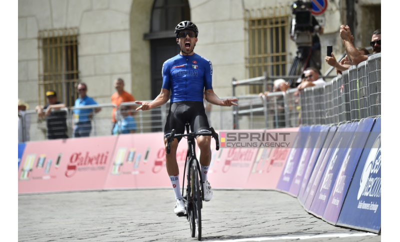 All'inseguimento dell'azzurro si sono portati Lorenzo Fortunato (Eolo Kometa), Vadim Pronskiy (Astana Qazaqstan), Luca Covili, Henok Mulubrhan, Filippo Zana (Bardiani-CSF-Faizanè), Jefferson Cepeda, Natnael Tesfatsion (Drone Hopper-Androni Giocattoli) e Paul Double (Mg K Vis), ma nonostante qualche scaramuccia nessuno ha avuto la forza di riportarsi sul corridore marchigiano. Al traguardo un urlo di gioia, ma anche di rabbia, a confermare una volta di più quanto questa situazione di stallo stia facendo male ai ragazzi della Gazprom-Rusvelo.
