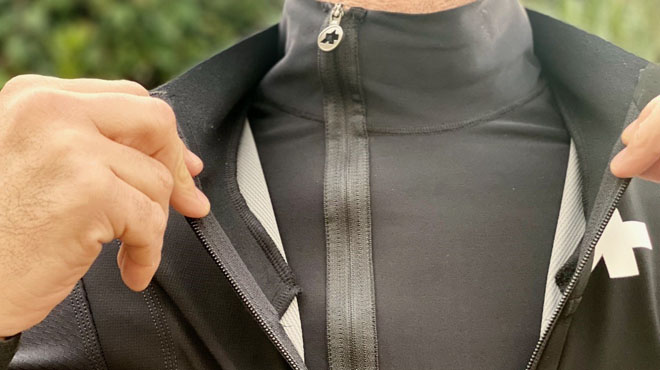 Senza mezzi termini, credo che la giacca Johdah Targa sia un vero portento per le uscite invernali tirate, quelle in cui potete eseguire variazioni e cambi di ritmo continui. Il lavoro di Assos sulle membrane softshell SPHERE è a dir poco fantastico, infatti oltre a ricavarne pannelli a spessore variabile riesce a dare a questa giacca un taglio racing fit che appagherà senza dubbio i più corsaioli. Generalmente per prendere aria se si alza il ritmo serve aprire del tuto la giacca, ma in questo caso i diffuser riescono a smaltire il calore in eccesso allontanando lo spettro di una eccessiva sudorazione. Il doppio colletto con zip sfalsata è incredibilmente comodo, cosi come sono ottimi i polsini, sottili ma ben strutturati.