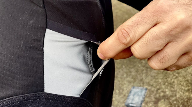 Si tratta quasi di due canne fumarie, un sistema pratico che funziona in maniera impeccabile. La parte interna del pannello posteriore è votata al lavoro puro, infatti, ogni suo componente è posizionato nel migliore dei modi per facilitare la traspirabilità. Un sistema di interscambio viene garantito anche dalla comunicazione tra le tasche e la parte interna della giacca, una sorta di filtraggio che avviene per via del tessuto traforato posto tra tasche e interno della giacca. In questa zona Assos posiziona una novità che tornerà utile a chi fa lunghe uscite, ovvero la gobaPok, una tasca interna posta appena sopra le tre classiche tasche posteriori ( si raggiunge solo dall’interno ) utile per portare con sé un capo alleycat o thermobooster se il clima peggiora.