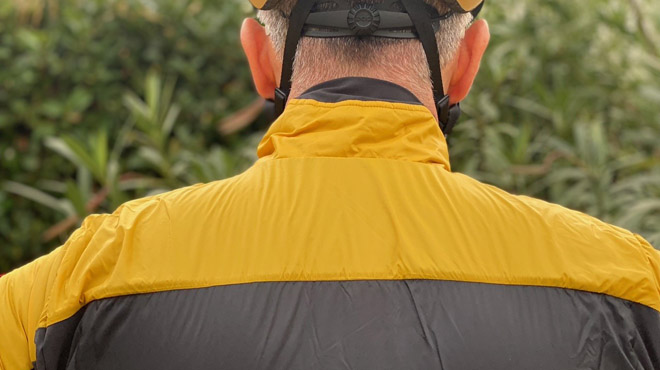 Il tessuto elasticizzato Nano Flex impiegato sui lati, sulla parte posteriore delle maniche, sui polsini e sulla parte bassa della schiena ( tasche comprese ) gioca un ruolo essenziale per offrire a chi indossa questa giacca una normale libertà di movimento. Le tasche posteriori sono ampie e ben schermate, inoltre, Castelli ne aggiunge una dotata di zip, un elemento sempre comodo. Sul petto infine ne viene posizionata una a scomparsa, utile per stivare documenti o denaro. Il colletto è abbastanza alto ed è bello caldo visto che il Polartec® Alpha® Direct viene impiegato anche in questa parte. La lunga cerniera YKK® Vislon® con tiretto a forma di “U” lavora in maniera esemplare in tutta la sua lunghezza.