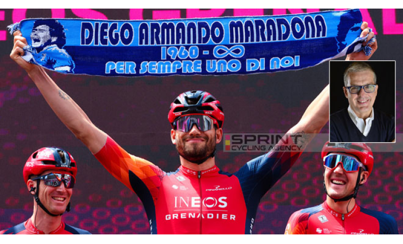 Mads PEDERSEN. 30 e lode. Come le sue vittorie in carriera. Ma che fatica, che gioia, che estasi su quel viale luminescente che brilla di luce abbacinante. Luce calda, come Napoli, che premia questo 27enne ragazzone del profondo nord, che si regala il primo sigillo al Giro d’Italia, completando la raccolta di tappe in tutti e tre i Grandi Giri. Anche per lui, per dirla con Benedetto Croce, Napoli è un “Paradiso abitato dai diavoli”: lui, Mads Pedersen, è in Paradiso, i diavoli se li è lasciati tutti alle spalle.