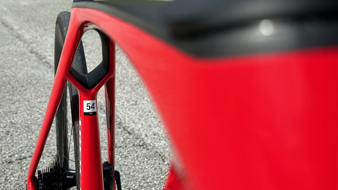 Rispetto al passato, la nuova versione sembra arrivata qui direttamente dal futuro, sarà per la nuova tecnologia IsoFlow, un dettaglio che ridefinisce quelle che erano le nostre convinzioni a livello di telaio. Questa tecnologia permette al tubo orizzontale di continuarsi idealmente sui due foderi alti del carro posteriore, andando a formare una sorta di spazio vuoto tra tubo sella e tubo verticale. L’aria in questa zona non conosce ostacoli e fluisce velocemente oltre la ruota posteriore.
