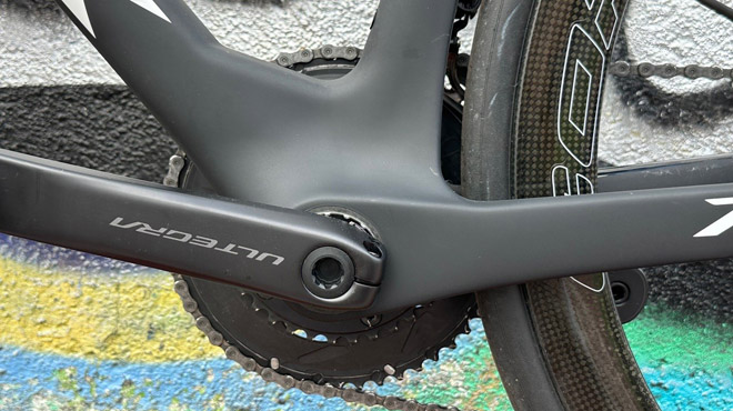 Qui la vedete montata con gruppo Shimano Ultegra Di2 e ruote Corima 47 MCC EVO, un montaggio di alta gamma. I colori sono quelli che per Look vogliono dire tradizione, un iconico mix che dona estrema eleganza a questo telaio. Il reggisella ha morsetto integrato, altro dettaglio aero di sicuro effetto. Nel dettaglio, il morsetto è di semplice regolazione e contiene in maniera efficace il tubo sella. Il manubrio si conferma ottimo dal punto di vista dell’ergonomia e regala una buona e comoda presa bassa, con le dita pronte sulle leve.
