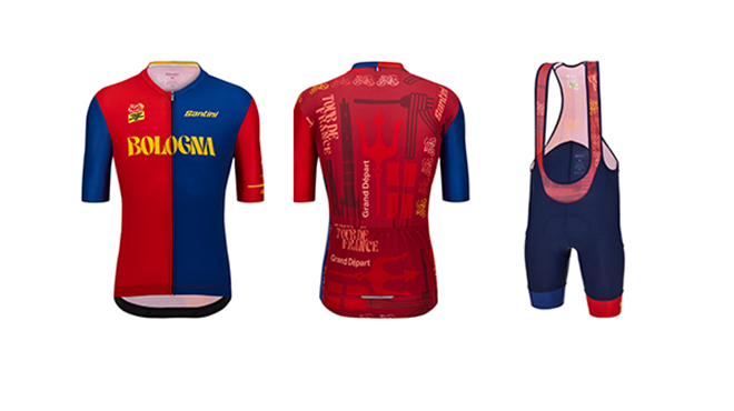Il brand bergamasco, infatti, realizza dei kit dedicati alle tappe ad ogni edizione della Grande Boucle per celebrare i territori su cui transita “il gruppo” e raccontare la storia dei luoghi attraversati. Per la seconda tappa del Tour de France di domenica 30 giugno, che quest’anno porterà i corridori a pedalare in Emilia-Romagna da Cesenatico a Bologna, Santini ha confezionato un completo che cattura lo spirito della città felsinea.