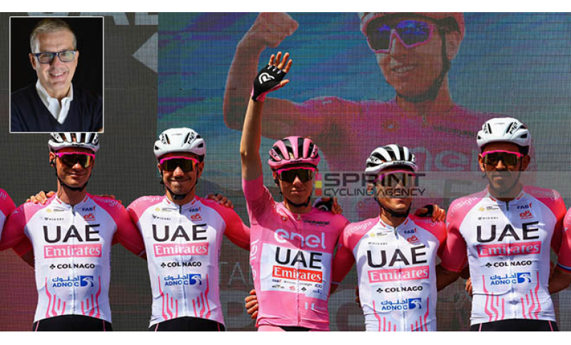 UAE TEAM EMIRATES. 10 e lode. Cosa potevano fare di più? Forse aspettare gli altri. Invece hanno fatto per tre settimane corsa d’avanguardia, con un maratoneta incontenibile e felice, che ha dato spettacolo distribuendo gesti di sublime bellezza, sia in bicicletta che giù. Seguito e acclamato da tutti ogni mattina, non si è mai sottratto al bagno di folla, distribuendo cappellini, autografi e selfie soprattutto ai bambini. Imparassero gli altri non tanto a stargli a ruota, ma a comportarsi con gli aficionados, che sono il vero motivo della loro esistenza. Ma le prime a capirlo dovrebbero essere le squadre, che pagano profumatamente i loro testimonial, che poi faticano a testimoniare. Detto questo, 17 piazzamenti nei dieci, sei vittorie di tappa con “Pogi”, distacchi da clessidra, la maglia di miglior scalatore e rosa di migliore del Giro. I suoi compagni di squadra fanno quello che chiede venga fatto, i suoi tecnici cercano di metterlo nelle condizioni migliori per esprimere il proprio talento, ne escono tutti alla grande anche perché disponevano di un gigante.