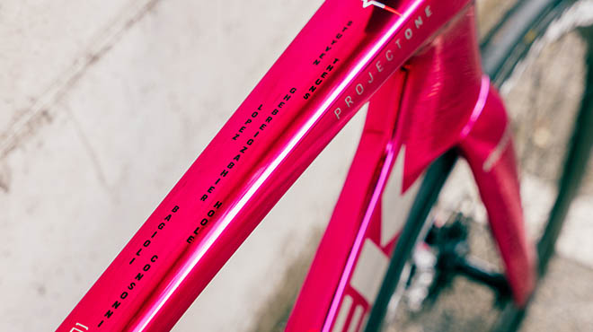 Il colore è di quelli spettacolari, ma una cosa è certa, la Trek Madone è un prodotto unico a priori ( qui la nostra prova ). Sontuosa e moderna, rappresenta l’apice della tecnologia Trek in termini di aerodinamicità e nelle mani di Jonathan Milan ha dato spettacolo in questa edizione del Giro d’Italia. Oltre alla pregevole colorazione ciclamino, una delle magie del programma Project One con cui Trek vi permette di personalizzare le bici, quella di Jonathan ospitava elementi grafici unici.