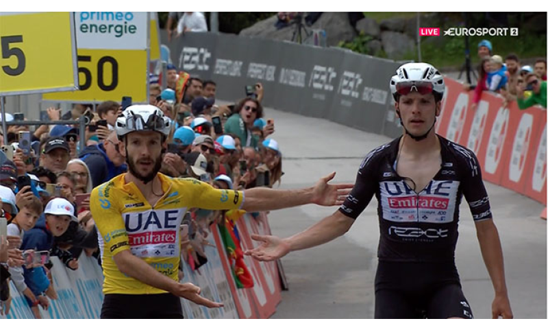 Ennesimo trionfo di squadra per la UAE Team Emirates che conquista la settima tappa del Giro di Svizzera e lo fa con i suoi esponenti di punta, Adam Yates e Joao Almeida, che arrivano addirittura in parata.