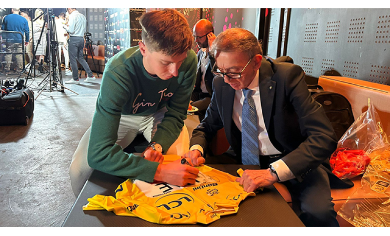 C’è il gotha del ciclismo e dell’imprenditoria della bicicletta e lui, il Maestro, si trova in un gorgo di mani e flash che lo circondano di affetto. Ogni tanto mi chiama: «occhio al quadro e alle magliette…», questa è la sua primaria preoccupazione, seconda solo a «quando arriva Taddej?...».