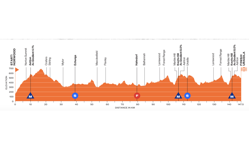 Una volata a ranghi quasi compatti è lecito attendersela anche il secondo giorno, nella Tanuda-Tanuda di 128,8 km. Il circuito presenta la salita di Menglers Hill (2,8 km al 6,6%), da superare l’ultima volta a 22 km dal traguardo. Le pendenze non spaventano, ma la vicinanza all’arrivo e la conseguente alta velocità costringeranno i velocisti a stringere i denti. Finale esplosivo invece nella terza tappa, la Norwood-Uraidla di 147,5 km: a poco più di 5 km dal traguardo ci sarà da affrontare lo strappo di Pound Reserve (2,7 km al 7,7%), trampolino di lancio ideale per chi vorrà provare a vincere la tappa.