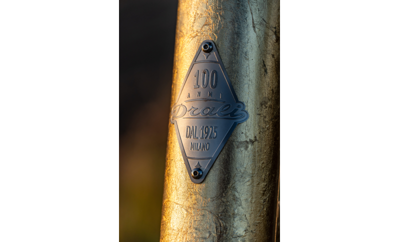 Drali Milano ha fatto una scelta molto particolare per celebrare il suo centenario, la Trinity è infatti uno dei modelli più apprezzati e più venduti di tutta la gamma. Progettata per offrire comfort e maneggevolezza, è caratterizzata da tubi in acciaio di diametro maggiorato che garantiscono una resistenza superiore alle sollecitazioni. Il modello Trinity del centenario è caratterizzato da un rivestimento con foglia d’oro applicato a mano, un tocco di lusso che rende la bicicletta unica nel suo genere, c’è poi l’emblema commemorativo dei 100 anni del marchio storico di Milano. «Per festeggiare il centenario di Drali Milano abbiamo deciso di organizzare diverse iniziative come il party riservato ad amici e sostenitori, ma anche lasciare un qualcosa di tangibile. Trinity 100 riprende un modello a noi caro, ma lo arricchisce di un colore d’oro splendente, un lusso che celebra un compleanno speciale. Siamo sicuri che il Drali ne sarebbe rimasto particolarmente colpito, siamo fieri di portare avanti la sua storia e i suoi insegnamenti migliorandoci sempre di più» hanno detto  Pozzi, Mantovani, Camerana e Carrara presentando il modello al pubblico.