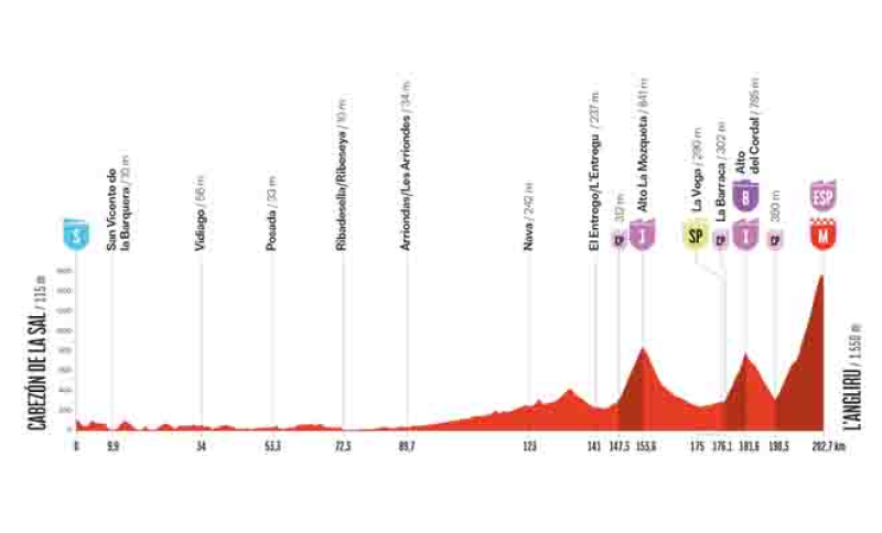 Si parte da Cabezon de la Sal per arrivare sull'Angliru, affrontando 202,7 chilometri che fanno di questa frazione la più lunga dell'intera corsa. La prima parte, come detto, vedrà i corridori pedalare lungo la costa, ma sarà quando svolteranno per addentrarsi nelle Asturie che cominceranno le difficoltà.