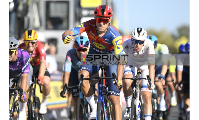 Jonathan Milan (Lidl - Trek) ha vinto la grande sfida tra velocisti e ha conquistato il successo nel Kampioenschap van Vlaanderen disputato oggi sul circuito di Koolskamp, in Belgio. Al termine degli undici giri in programma (180 chilometri) il friulano ha anticipato Dylan Groenewegen (Team Jayco AlUla) e Tim Merlier (Soudal Quick-Step) festeggiando la venticinquesima vittoria della sua carriera. Subito a ridosso del podio si è classificato Matteo Malucelli (XDS Astana Team) mentre Giacomo Nizzolo ha tagliato il traguardo in decima posizione.