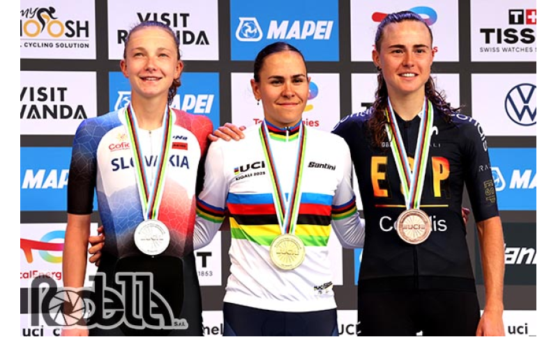 Il primo titolo "in linea" dei Mondiali di Rwanda 2025 è quello di Celia Gery (Francia) che vince la corsa femminile Under 23 sulla distanza di 119.3 chilometri, precedendo Viktoria Chladonova (Slovacchia) che si deve accontentare della medaglia d'argento come nella cronometro. Al photofinish Paula Blasi (Spagna) batte Eleonora Ciabocco (Italia) per il bronzo. Altro 4° posto per l'Italia dopo la crono di Lorenzo Finn e la staffetta mista, ma solo complimenti per la marchigiana della Picnic PostNL che era l'unica azzurra in gara.