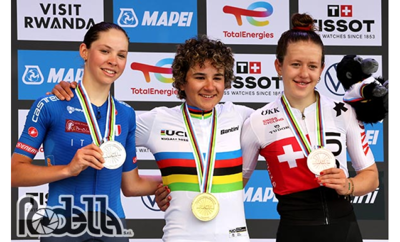 Chantal Pegolo regala all'Italia un fantastico argento nella prova junior donne al Mondiale di Kigali, in Rwanda. In una gara tesa, in cui nessuna è riuscita a fare la differenza, l'azzurra ha dimostrato di avere un'ottima gamba giocandosi il titolo in volata con la spagnola Paula Ortiz Taco, nuova campionessa del mondo di categoria. Terza Anja Grossmann, ma per le azzurre è stata una corsa gestita con intelligenza: quinto posto per Giada Silo nonostante una scivolata, 22esima Elena De Laurentiis, con le migliori fino agli ultimi chilometri.