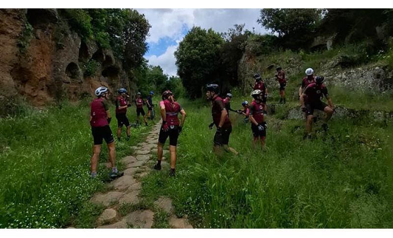 Sono i due grandi progetti su cui si muove CiclisticaMente, associazione sportiva dilettantistica di Anguillara, sul Lago di Bracciano, nata nel 2023, una cinquantina di tesserati, un centinaio di aderenti e migliaia di potenziali praticanti telematici, con sito Internet e pagina Facebook. Marco e Anna, dopo aver pedalato da soli e in gruppo, in situazioni improvvisate o organizzate, in appuntamenti strutturati o in occasioni estemporanee, in formula macchina+bici o treno+bici, hanno pensato insieme a un ciclismo diverso: “Quello dell’aggregazione – spiega Marco -. Pedalare per condividere emozioni. Ogni sabato un’uscita di gruppo, aperta non solo ai soci ma a tutti, ripercorrendo tracce collaudate o spingendoci in nuovi itinerari, affrontando cicloviaggi (in Sicilia, la Via Silente nel Parco nazionale del Cilento, presto anche in Puglia) o partecipando a eventi speciali come l’Eroica, dove almeno una volta nella vita bisogna andare”. E al suo trentaduesimo anno di ciclismo, Marco può a buon diritto considerarsi “uno dei massimi conoscitori della sentieristica fra Roma e Viterbo”, “sempre alla ricerca di nuove tracce divertenti”, “tracce ideali per le bici gravel, perfette per andare dovunque, sia sull’asfalto che sui sentieri”, “in un territorio bellissimo, che nulla ha da invidiare a quelli toscani e umbri, molto più pubblicizzati”.