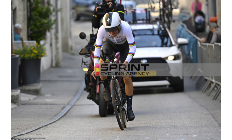 Vittoria in maglia iridata, bissando non solo il successo ai Mondiali di Kigali ma pure quello continentale dello scorso anno: in entrambe le annate da Juniores, l'olandese Michiel Mouris vince gli Europei di categoria a cronometro! Il talento del vivaio Red Bull completa i 24 km da Loriol-sur-Drôme a Étoile-sur-Rhône (con ultimo chilometro al 5,2%) in 30'49'' precedendo sul podio l'irlandese Conor Murphy e il danese Julius Birkedal.