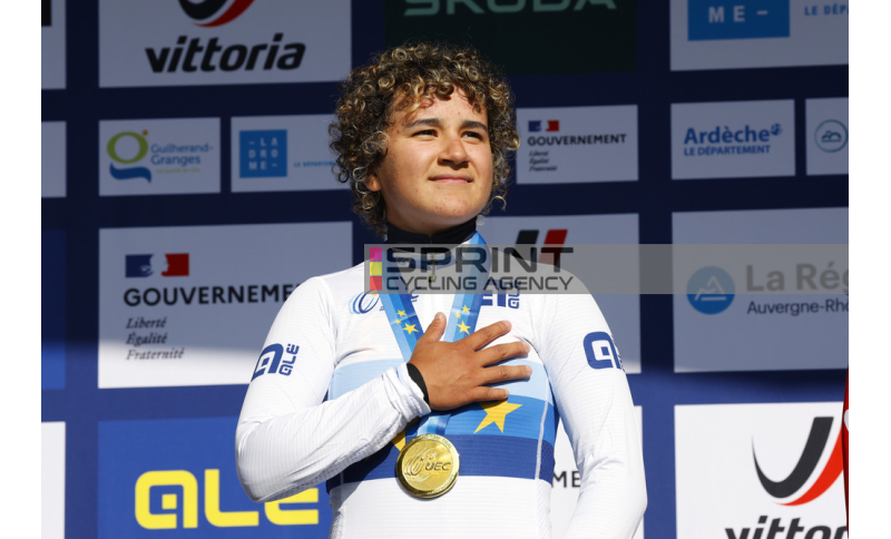 Con un rush finale imperioso Paula Ostiz si laurea campionessa europea donne junior a cronometro. La talentuosa atleta spagnola ha aperto la rassegna continentale nella regione del Drôme e Ardèche fermando il cronometro in 18'38" nei 12,2 km previsti e battendo di appena due secondi la tedesca Magdalena Leis, a lungo sulla hot seat. 3° posto e medaglia di bronzo per la norvegese Oda Aune Gissinger, già terza ai Mondiali di Kigali, brava ad anticipare l'iridata Megans Arens (Paesi Bassi), solo quarta.