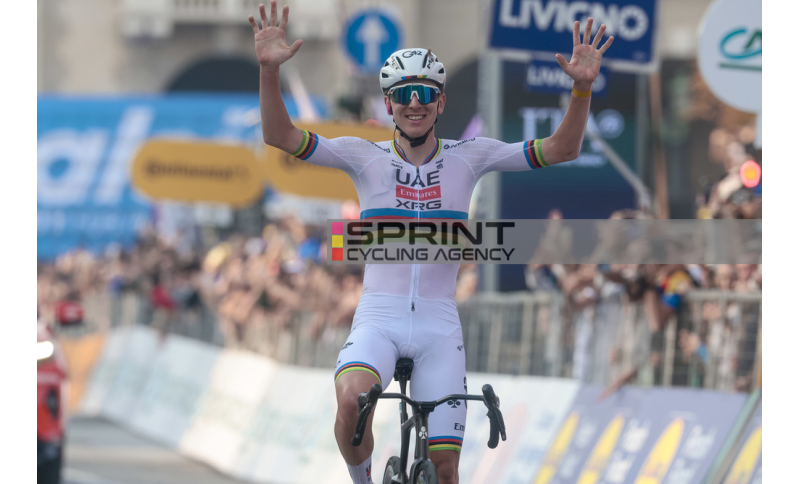 Il primo dei battuti, ancora una volta, è Remco Evenepoel che saluta la Soudal Quick Step con un'ottima prestazione, purtroppo per lui non all'altezza di questo fuoriclasse in maglia iridata che sta riscrivendo la storia del ciclismo. Sul terzo gradino del podio con questi due fenomeni sale Michael Storer della Tudor, che taglia il traguardo prima del bravissimo Simmons. La volata per il quinto posto è vinta da Isaac Del Toro, che completa la festa della squadra emiratina.