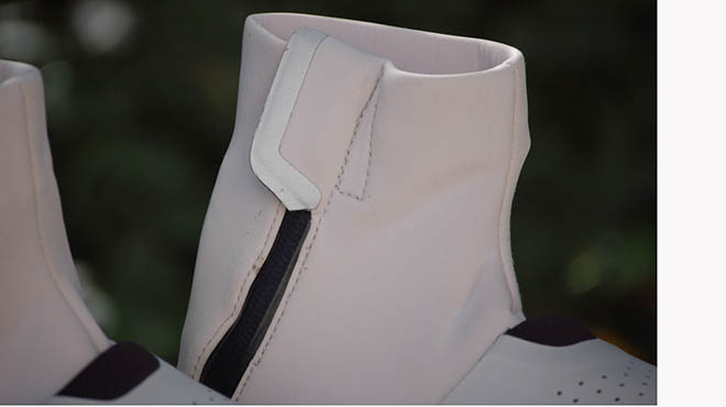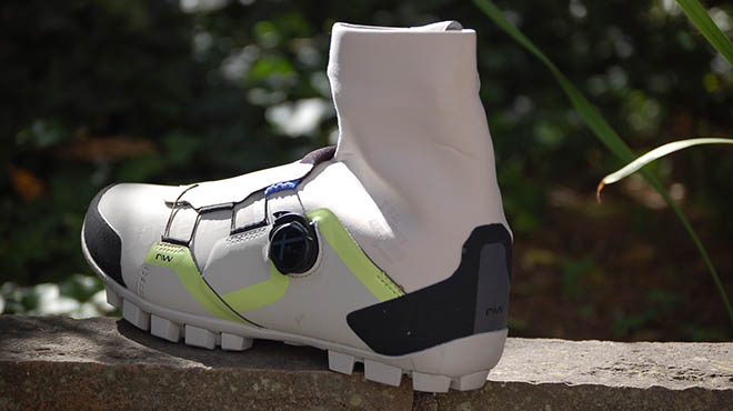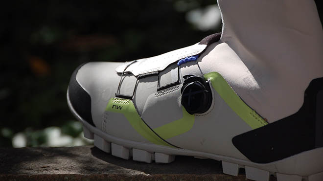 Le ho utilizzate prevalentemente con la gravel a fine inverno scorso e conto di indossarle a breve per completare quello che considero un lungo test. Dal punto di vista dell’isolamento il lavoro di Northwave è ottimo e trova nella membrana Cirrus XT 4L e nell’imbottitura Primaloft® Gold 200 g eco due alleati pazzeschi. Non sono riuscito a scendere sotto lo zero per ora, ma ho pedalato abbastanza tra 5 e 15°C. In tutta franchezza in questo range termico di utilizzo ritengo inutile il calzino invernale ed il comfort registrato è stato elevatissimo. La suola la conoscevo già molto bene e mi ha convinto ancora di più in una scarpa invernale come questa, un prodotto in cui il Flexy System fa la differenza. Gli ingombri minimi e il maggiore volume interno mi hanno colpito e sono i punti su cui credo che NW abbia raggiunto grandissimo equilibrio. Fango e pioggia restano fuori, dimenticate quindi le dita ibernate o scomodi puntali difficilmente utilizzabili nello sterrato. A fine giro un colpo di spazzola, sapone neutro e la scarpa torna nuova. L’intera struttura esterna è flessibile e non ostacola i movimenti del piede durante la pedalata. Il collarino in neoprene previene l’ingresso dell’acqua ed è ben sovrapponibile al pantalone o al calzino.