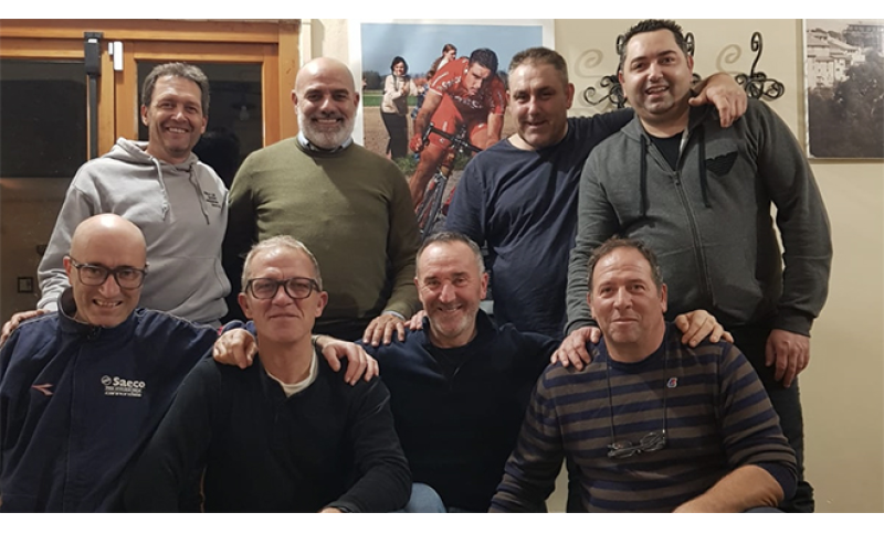 Al suo fianco la compagna Samantha e papà Piero, sempre pronto a intervenire, subetrare, raddoppiare a fare gioco di squadra, con Dario che è quello di sempre: trascinatore e tracimante, generoso e mai domo, goloso e ben disposto ai brindisi. Calici di vino, “ciccina” da far venire l'acquolina in bocca: tutti felici di esserci, anche in foto. Da sinistra a destra, partendo da quelli in piedi: Tullio Pelliccioli, Massimiliano Napolitano, Dario Pieri, Federico Cecchi. Inginocchiati da sinistra: Alessandro Gualdi (con giacca-tuta d'ordinanza Saeco) Mauro Bencini, Giuseppe Archetti e Gabriele Balducci. Tutti assieme appassionatamente, per prendere le misure, per veder l'effetto che fa, in attesa di allargare le convocazioni, per una rimpatriata in grande stile.