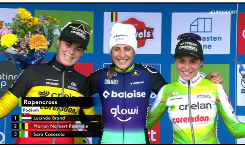 Settimo podio consecutivo per Sara Casasola che anche oggi ottiene la terza posizione a Lokeren (Belgio) nel Rapencross prova della Challenge X2O Trofee Badkamers. La friulana, protagonista di un avvio dirompente poi rallentana da qualche problema tecnico, si è ripresa alla grande nel finale fino ad agguntare un meritato terzo posto dietro la solita Lucinda Brand e alla compagna di squadra della Crelan Corendon Marion Norbert Riberolle seconda classificata.