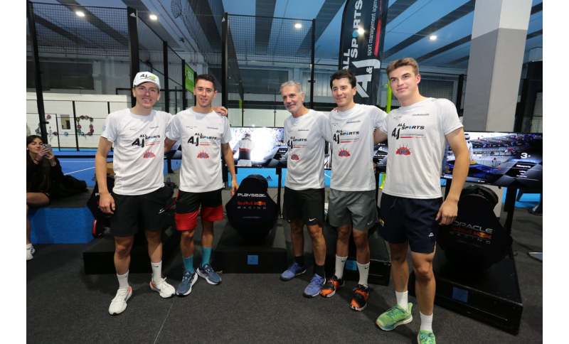 È la seconda edizione del torneo di padel organizzato dall’agenzia dei fratelli Johnny e Alex Carera, un piccolo antipasto dell’ormai celeberrimo party per festeggiare tutti i successi della stagione. Vedendo la formula vincente dello scorso anno riproporre il padel è stato praticamente automatico, ma questa volta hanno deciso di aggiungere l’esperienza del simulatore di corsa per permettere a tutti quanti di calarsi nei panni dei piloti di formula uno. «Ormai facciamo il nostro party da oltre 20 anni e abbiamo sempre mille idee, poi l’anno scorso ci è venuto il pallino del padel e ci siamo subito accorti che ai corridori piaceva – ci hanno detto Johnny e Alex Carera- quella della virtual race è stata un po’ una scommessa e vedendo le facce di tutte le persone che ci sono qui abbiamo fatto veramente centro. »