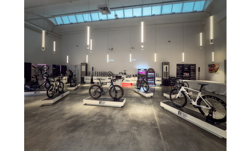Nel frattempo, nell'androne principale della sede societaria si svolgevano momenti d'intrattenimento come la pittura-collage in diretta dell'ex corridore e oggi artista Miguel Soro, il social mirror dove potersi scattare una foto ricordo, la macchina pesca-palline stile luna park per aggiudicarsi premi di marca. All'esterno, sotto un cielo ideale per andare in bici nel freddo novembrino, i presenti hanno potuto provare i modelli strada e gravel di Factor Bikes, nuovo brand di punta di Beltrami TSA dopo l'era Argon 18, dopodiché il direttore sportivo del team Under 23 Beltrami La Risorsa Umana, Alioscia Facchini, ha guidato i suoi ragazzi e un gruppetto di appassionati d'ogni età in una pedalata nei dintorni reggiani. Nel pomeriggio, una bella mezz'ora di gimkana per le squadre Giovanissimi della zona.