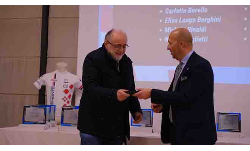 Uno sguardo alle prossime manifestazioni che caratterizzeranno il 2026 (annunciata Lione-Torino professionistica) è stato rivolto anche da parte di Elvio Chiatellino, imprenditore che è stato capace di portare a Pinerolo quattro volte il Giro d’Italia e due volte il Tour de France. Il Presidente del Coni Regionale Stefano Mossino ha quindi rivolto un’accoglienza speciale alla formazione che ha vinto la medaglia d’argento al Trofeo Coni, dove questa Regione è sempre protagonista(al pari di Bicimparo). Spazio anche al mondo Paralimpico, con le maglie rosa del Giro d’Italia Handbike vinte dagli atleti della Sport Abili di Alba, guidati dall’olimpionica Francesca Fenocchio.