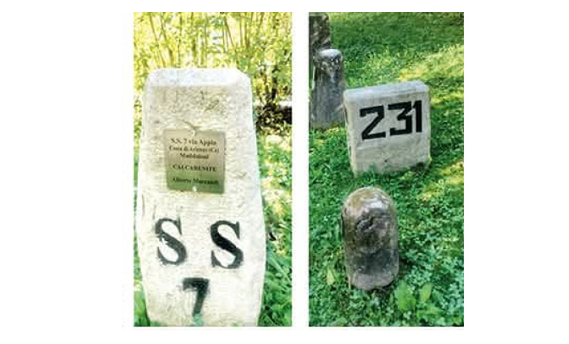 La pietra miliare dedicata ad Alberto Marzaioli porta la scritta S.S. 7 Appia con, di lato, il progressivo km. 231 – via Appia Costa d’Arienzo. Una pietra miliare che era un momento ricorrente, abituale, nei percorsi d’allenamento di Alberto Marzaioli sulla storica strada consolare romana.