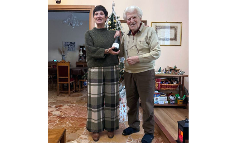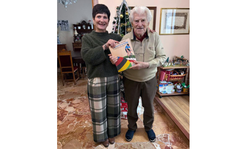 Rossella è stata accolta a casa Bonariva con tutti gli onori del caso e con Alfredo hanno brindato con un vino bianco della cantina Francesco Moser tanto per rimanere in tema. A Bonariva è stato inoltre consegnato il libro AZZURRO E IRIDE edito dal sottoscritto e Giampiero Petrucci gentilmente regalato in occasione del Natale 2025 dalla stessa Rossella insieme al marito Carlo Barlassina.