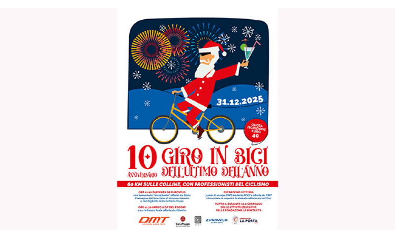 Ormai è diventato un classico dell'ultimo dell'anno. Per la 10a volta a Ca' del Poggio Innocente “Inno” Ciciliot organizza il Giro in bici dell'ultimo dell'anno radunando tanti amici per fare del bene. 60 km sulle Colline del Prosecco Conegliano-Valdobbiadene, patrimonio mondiale dell'umanità UNESCO, con partenza alle ore 10.00 dal negozio di bici Eurovelo a Vittorio Veneto di Silvia Salezze e arrivo all'Hotel-Ristorante Ca' del Poggio di Alberto Stocco a San Pietro di Feletto, nel Trevigiano, sede di tanti arrivi prestigiosi con il suo noto muro.