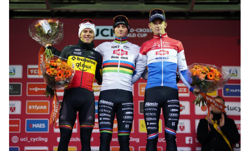Quinta sinfonia di Van Der Poel nel teatro belga di Gavere. L'iridato vince anche la settima manche della Coppa del Mondo di Ciclocross elite conquistando la sua quinta affermazione consecutiva nella speciale Challenge mondiale della UCI. L'olandese della Alpecin Deceuninck si è involato a due giri dalla conclusione dopo aver staccato di ruota il campione belga Nys con il quale si era avvantaggiato da un gruppetto di sei atleti comprendente Vanthourenhout, Del Grosso, Aerts e Verstrynge. Nettamente più forte l'azione di Van Der Poel che quando decide di allungare per gli avversari non c'è storia. Trionfa davanti a Nys (oggi in netta ripresa) e Tibor Del Grosso. Quarto il campione europeo Aerts.