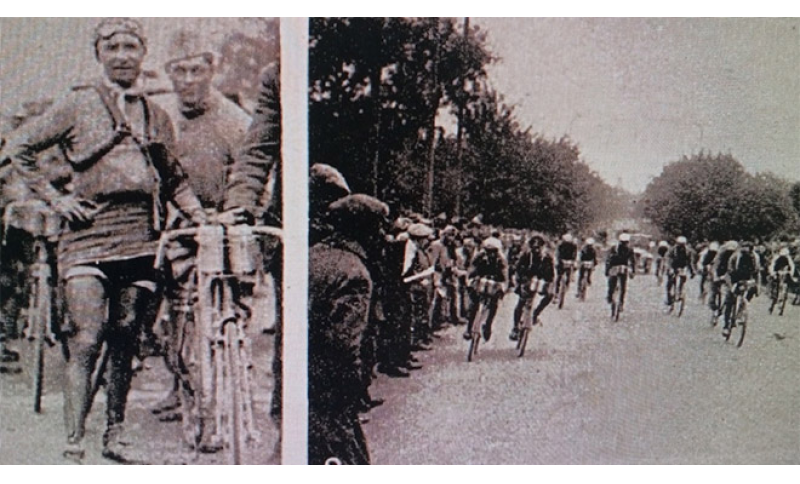 Allargare l’orizzonte a quanto accadde oltre il confine nazionale permette di imbattersi nel gran giorno di Federico Gay, 19 luglio 1922, sulle strade di Francia. Nel reportage fotografico pubblicato sul Miroir du Cyclisme si vede l’ex aviatore torinese intrufolarsi alla destra del plotoncino di 14 fuggitivi per far sua la Strasburgo-Metz, frazione portatasi negli annali anche la squalifica del belga Heusghem, “reo” di aver cambiato la bici in corsa. Gay, non senza vena polemica, quando era direttore sportivo della Bottecchia, fu severo nei confronti dei corridori di allora (dopo il secondo conflitto), ricordando sulle colonne de La Stampa quando ci si portava la bici in camera. E rievocò anche un famoso precedente di Learco Guerra: «nei campionati del mondo a Copenaghen aveva ricevuto dalla Federazione il divieto di portare la bicicletta nella propria camera. Guerra - assieme al massaggiatore Cavanna, legò con le lenzuola la bicicletta e la fece salire dalla parte del balcone. Poi andò a dormire tranquillo e vinse il Campionato del mondo”.