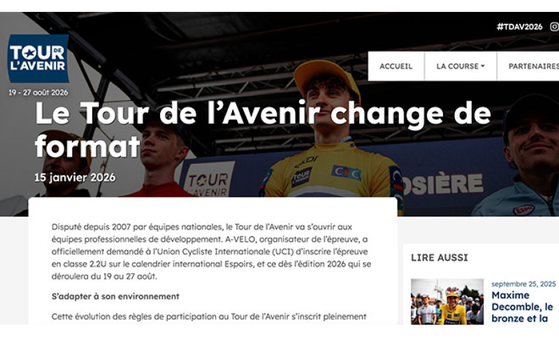 «Questa evoluzione delle regole di partecipazione al Tour del'Avenir si iscrive pienamente nella realtà dell'attuale ciclismo di alto livello che ha visto, in seguito alla riforma del ciclismo professionistico avviata dall’UCI. Le squadre investono progressivamente nell'accoglienza e nella formazione dei (molto) giovani corridori creando gruppi di sviluppo, veri e propri incubatori dell'ecosistema UCI WorldTour» precisa l'organizzazione.