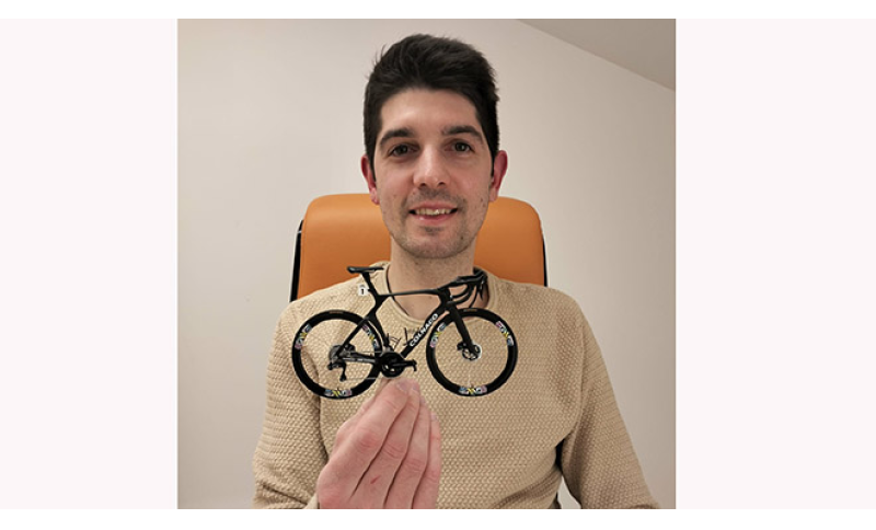 La bicicletta è arte, anche... in miniatura. Eddy Scquizzato - padovano di Piombino Dese di 32 anni, ex ciclista agonista fino alla categoria dilettanti, vincitore tra l'altro di un Oscar tuttoBICI nella categoria Esordienti - ha realizzato la Colnago Y1Rs di Tadej Pogačar in scala 1/10: è la bici con cui lo sloveno ha vinto i Campionati del mondo in Rwanda nel settembre 2025.