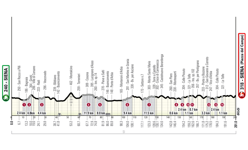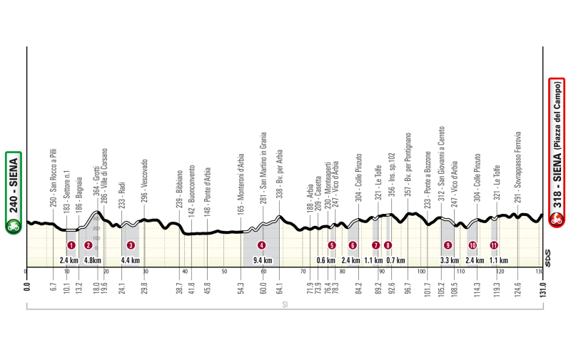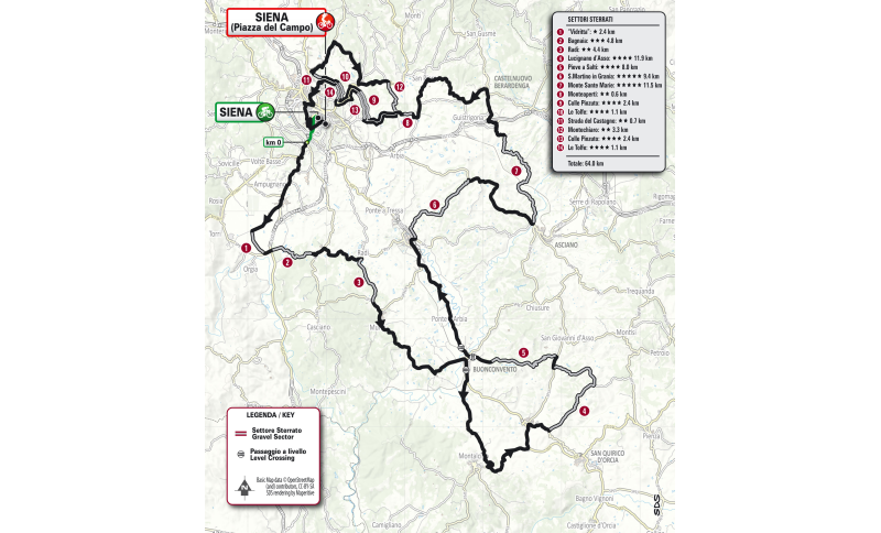 Giusy Virelli, Sport & Event Manager di RCS Sport: «Nel 2026 si corre la ventesima Strade Bianche, che in pochi anni è riuscita a incollare gli appassionati ed essere considerata una sesta monumento. La partnership con la città di Siena è il "boost" che ci ha permesso di far crescere l'evento e costruire un long weekend d'iniziative di ogni genere. Il territorio senese e i grandi campioni che si cimentano sul percorso creano un connubio perfetto per intercettare gli appassionati sportivi e non. I percorsi saranno molto simili tra loro e simili agli scorsi due anni, con le doppie percorrenze di Colle Pinzuto e Le Tolfe. Abbiamo cercato per il 2026 di allestire un percorso sfidante e spettacolare, ma senza eccessi. Quindi sono 131 km (32 di sterrato) per le donne e 201 (64 di sterrato) per gli uomini, con una leggera riduzione rispetto alle ultime edizioni, comunque rimarranno i settori più tradizionali come San Martino in Grania e Monte Sante Marie. Ci aspettiamo il solito tifo entusiasta e la solita startlist di alto livello: ci saranno i campioni in carica Tadej Pogacar e Demi Vollering, ci saranno Van Aert, Healy, Alaphilippe, Gregoire, Del Toro. Tra le donne sarebbe bella un'affermazione di Kopecky o Vollering, che nel caso farebbero tris e ci sarebbe un cippo pure per una donna, o naturalmente di Elisa Longo Borghini, che vinse nel 2017 e farebbe quindi bis.»