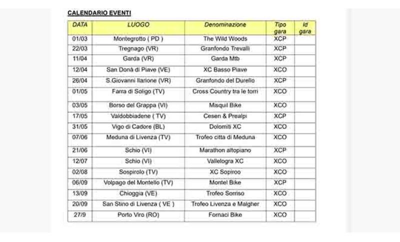 Il circuito partirà il primo marzo da Montegrotto, in provincia di Padova con la “The Wild Woods” e si concluderà il 27 settembre a Porto Viro, nel rodigino, con la “Fornaci Bike”.