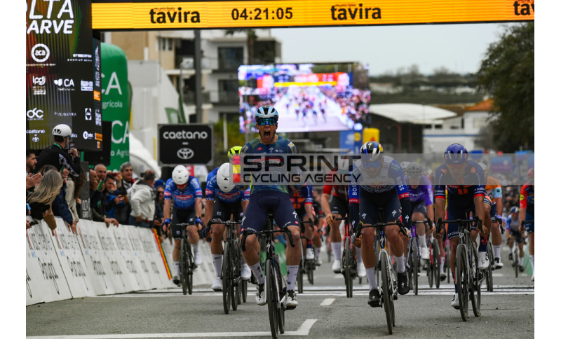 Oltre a ciò, la squadra belga ripartirà domani da Portimão con il proprio velocista in maglia gialla di leader della corsa ma difficilmente, vista la dura ascesa di Fóia che attende i corridori nel finale della seconda tappa, tra ventiquattro ore potrà confermarsi al comando della generale dove, coi secondi di abbuono guadagnati oggi con grande prontezza, non è da escludere possa issarsi un Juan Ayuso apparso molto vivace alla prima uscita stagionale con i colori della Lidl-Trek.