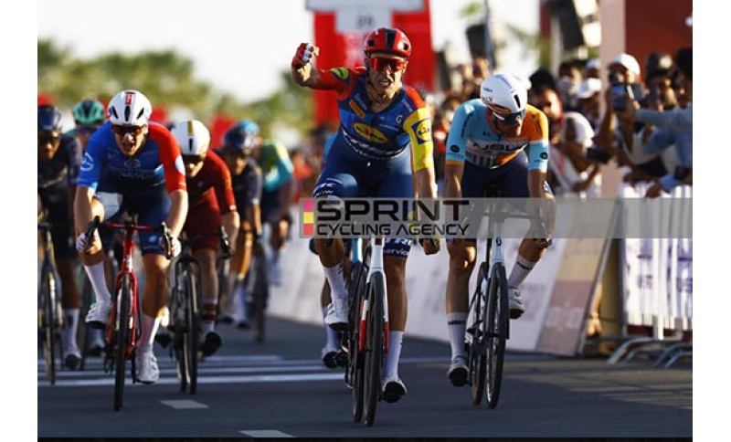 Volata di forza di Jonathan Milan nella quarta tappa dell'UAE Tour 2026, la Fujairah - Fujairah di 182 km. Il friulano della Lidl Trek completa alla grande il lavoro di squadra centrando la terza vittoria in stagione davanti al britannico Ethan Vernon (NSN) e al fratello Matteo (Groupama-FDJ United) che con la terza posizione conquista il suo primo podio tra i professionisti. Immutata la classifica che vede al comando sempre Antonio Tiberi.