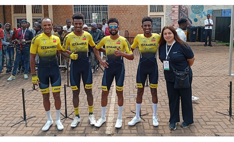 “La nostra compagine nasce nel 2023 con una precisa ambizione: ferma restando l’appartenenza turca, possiamo ben intetrpretare un ruolo di ponte che la nostra nazione ha da sempre. Lo sanno anche delle vostre squadre italiane, Il calendario in Turchia e’ andato arricchendosi, attirando sodalizi europei, Asiatici e non solo. E per quanto riguarda l’Eritrea, tutto ha origine dal riconoscimento di una leadership a livello africano. Ho pertanto cercato profili di corridori eritrei che rafforzassero anche un passaggio generazionale. I più esperti insegnano ai piuùgiovani ed è un bene anche per I ciclisti nazionali” – racconta la dirigente ed ex biker, circondata da uno staff coeso consapevole (Bayram, 36 Anni, ha solidi studi in ambito del marketing sportivo) di quanto in primis a Istanbul si stiano sviluppando attenzioni speciali, anche a livello di investimenti, verso questa o quella disciplina, Calcio e volley ma non solo. L’Eritrea ripaga la scelta dell’Istanbul Cycling Team, presentandosi al Tour du Rwanda con un roster in cui il cognome illustre e’ quello di Mewael Girmay, fratello di Biniam, terzo nella prima frazione terminata a Rwamagana ed anche in fuga verso Rusizi.