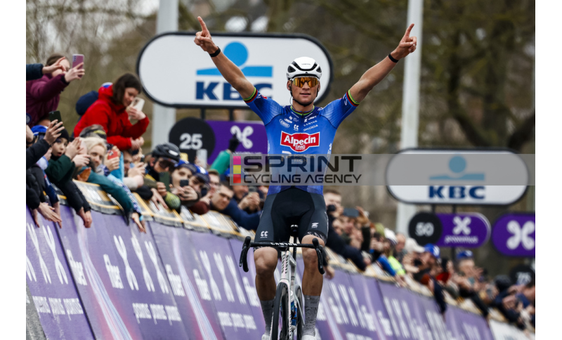 Ha scelto la Omloop Het Nieuwsblad per aprire la sua stagione su strada e nella gara belga, tra muri e pavé, Mathieu van der Poel ha conquistato la prima vittoria del 2026. Il campionissimo della Alpecin-Premier Tech, alla prima partecipazione in questa competizione, ha scalato in progressione il Muur e dopo una fuga solitaria di 15 chilometri ha tagliato il traguardo a braccia alzate anticipando di una ventina di secondi il connazionale  Tim van Dijke (Red Bull - BORA - hansgrohe) e il belga Florian Vermeersch (UAE Team Emirates - XRG). In quarta posizione si è classificato  Christophe Laporte (Team Visma | Lease a Bike) che ha superato Aimé De Gendt (Pinarello Q36.5 Pro Cycling Team), quinto. Per Van der Poel la vittoria odierna la cinquantasettesima della carriera in gare su strada