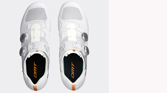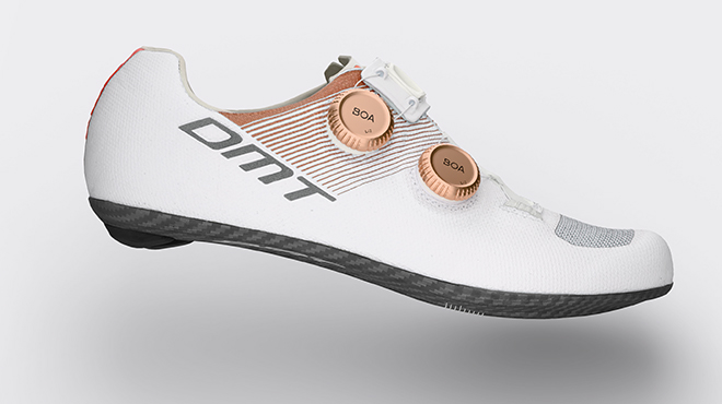 DMT ha recentemente lanciato il modello Superlight anche delle KR0 EVO, con l’obiettivo di rivolgersi a chi cerca il massimo in termini di leggerezza, comfort e aerodinamica. Ogni dettaglio è stato progettato per ottimizzare l’efficienza in sella, a partire dalla tomaia in Aeroflex Knit, realizzata con un nuovo filato tecnico che combina resistenza, traspirabilità e flessibilità, adattandosi in modo naturale alla forma del piede.