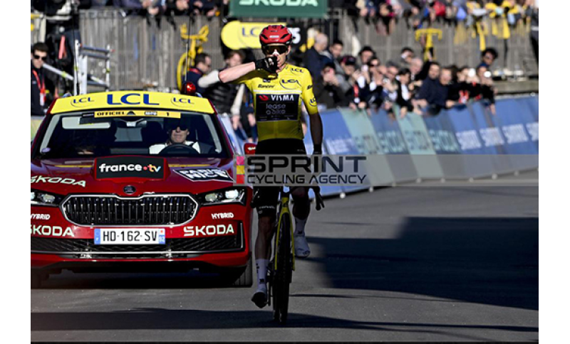 Vingegaard ha trasformato la quinta tappa della Parigi‑Nizza 2026 in un nuova dimostrazione della sua superiorità in salita: un attacco secco ai –20 km da Colombier‑le‑Vieux, nessuna risposta possibile dagli avversari e un assolo che gli consegna la seconda vittoria consecutiva e consolida una leadership ormai solida. Il danese della Visma Lease a Bike trionfa con un assolo di grande effetto bissando il successo di ieri. Un dominio indiscusso che permette a Vingegaard di anticipare di oltre 2' i più immediati inseguitori regolati da Valentin Paret Peintre su Tejada e Martinez.